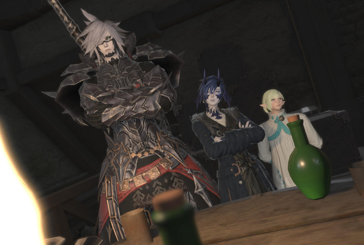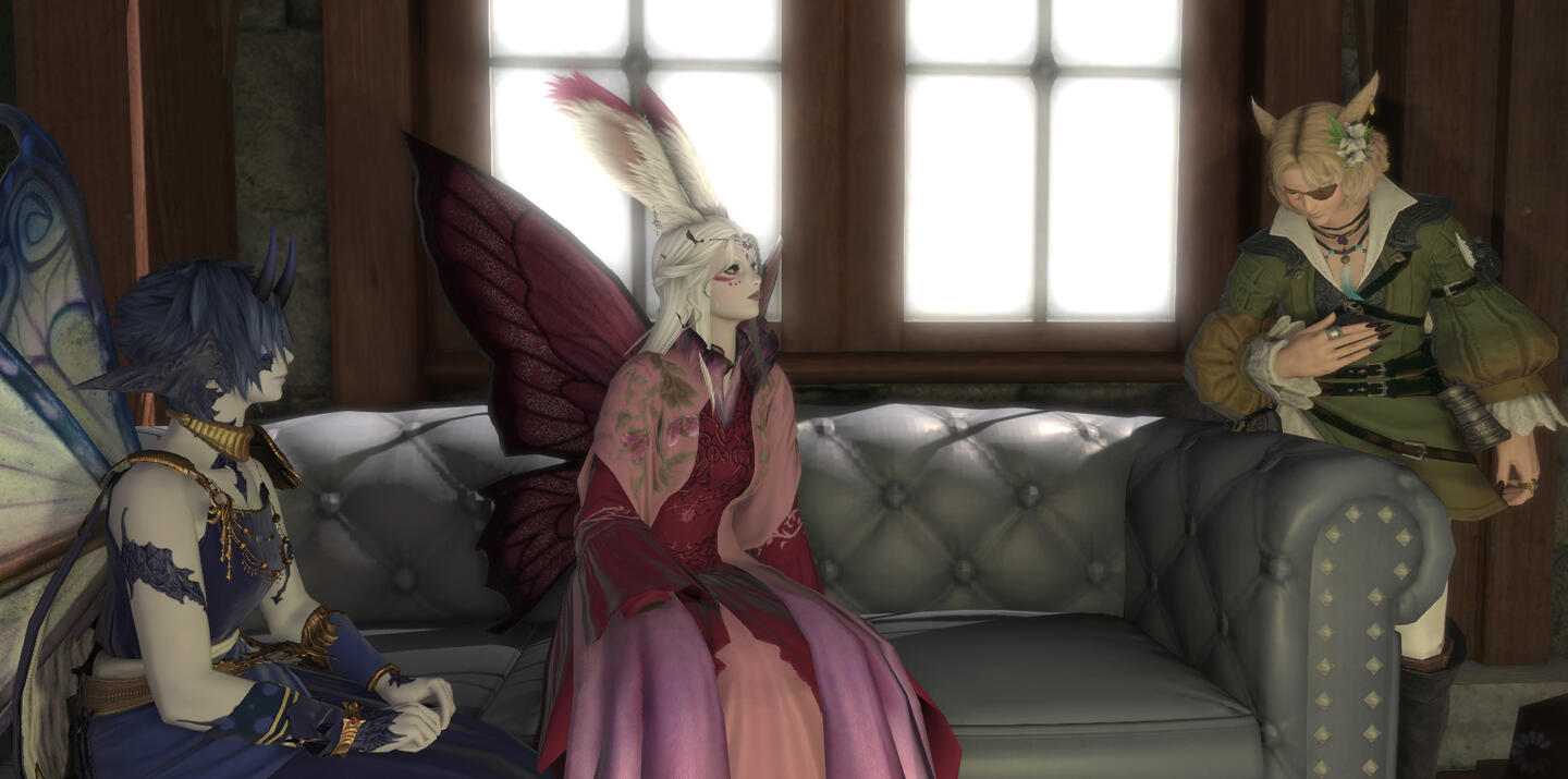 FowlerTanza met Fowler while she was exploring the shores of La Noscea. She was wandering when she heard what sounded like the cry of an injured animal. When she investigated further, she found the miqo'te running for his life from a heard of cows. Seeing an opportunity, Tanza dispatched the beasts for their meat and leather. Fowler saw an opportunity and attached himself to the women for protection. He followed her all over Eorzea much to her distaste, constantly getting lost and provoking local wildlife. It wasn't until Tanza had a fainting spell in a dungeon and woke up to find Fowler waiting for her, not just leaving her behind, that she started to care for him. Since then their relationship has grown into something Tanza has trouble putting a name to.